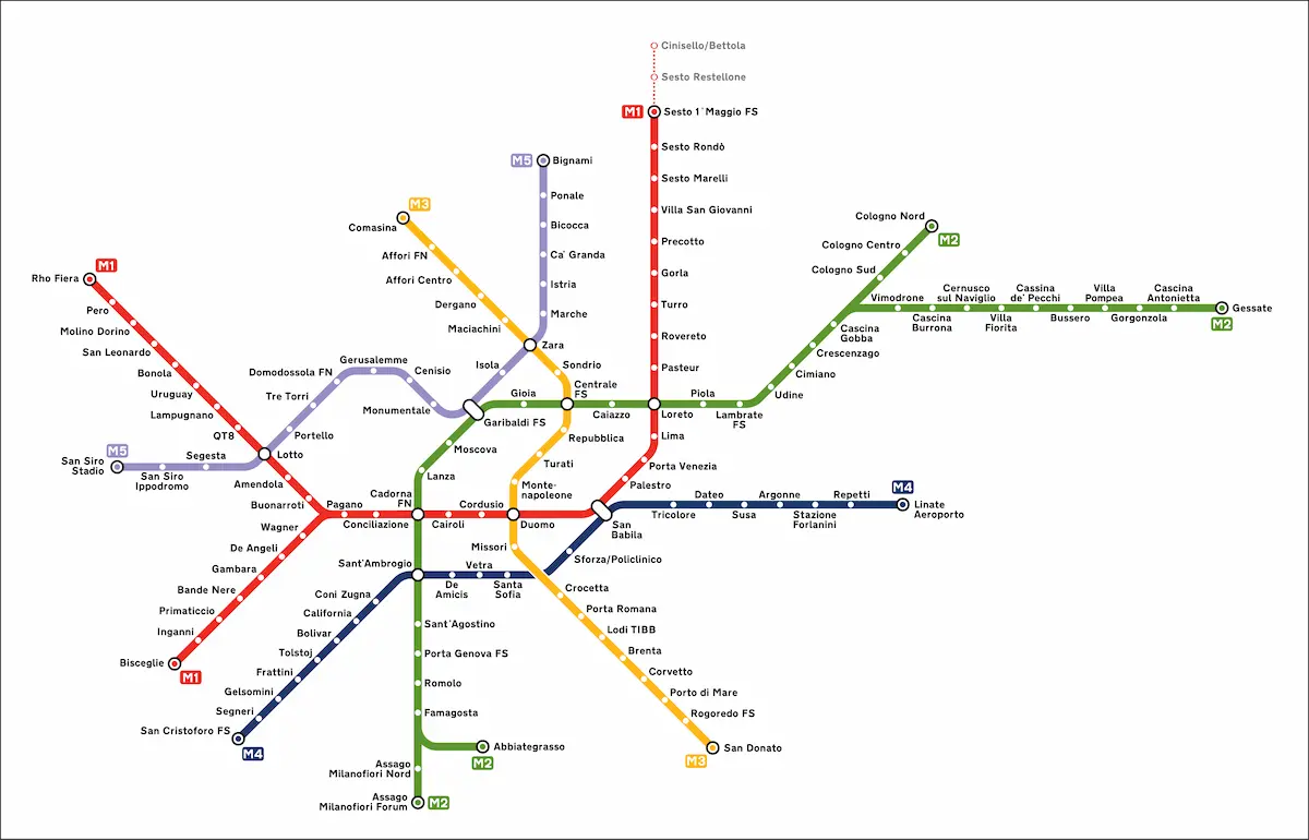 • Metro M2 (Centrale FS) → Garibaldi → M5 Lilla → San Siro Stadio